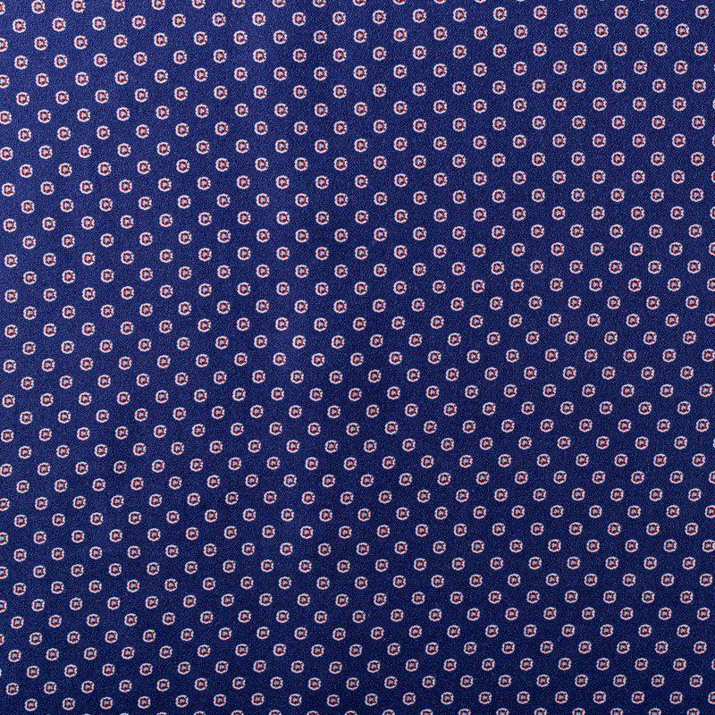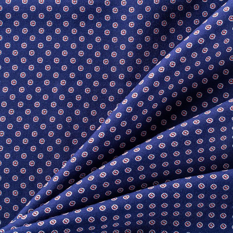 Натуральная вискозная ткань темно-синего оттенка с геометрическим мелким принтом. Легкая, хорошо тянется, драпируется струящимися складками, приятная и комфортная в носке. Материал слегка мнется имеет креповую фактуру. Идеально подходит для пошива платьев, юбок, блуз, комбинезонов.