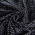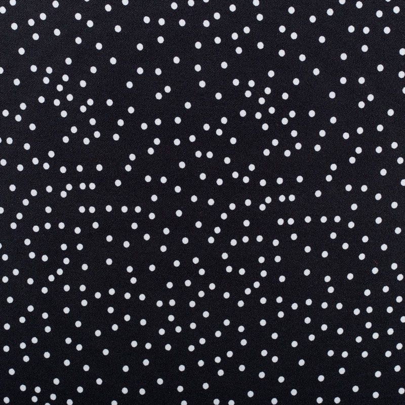 Плательный креп с принтом в мелкий горох. Ткань средней плотности, не толстая, пластичная, поверхность полотна матовая, с характерной мелкозернистой фактурой, прочная, практически не мнется, хорошо драпируется. Превосходно подойдет для пошива стильного костюма, юбки, платья, комбинезона, топа, брюк.