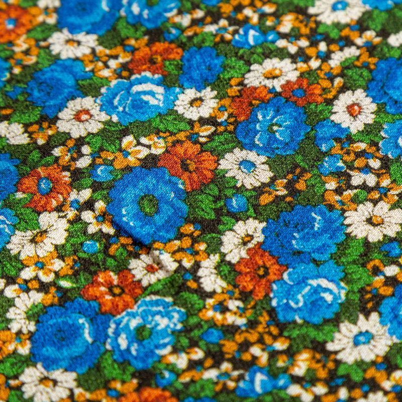 Итальянский креп плательной плотности с мелкоцветным ярким принтом. Поверхность матовая и фактурная, ткань малосминаемая, тянется за счет эластана в составе, красиво драпируется, струится и дает объемную складку, не просвечивает.Идеально подойдет для шикарного платья, блузы, юбки, комбинезона, брюк свободного кроя.