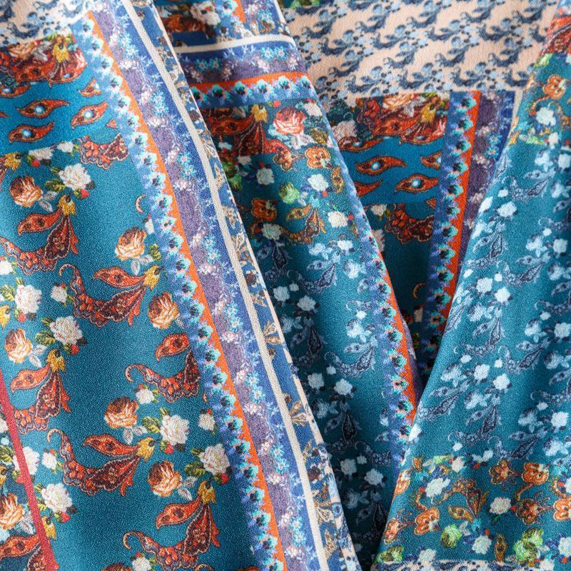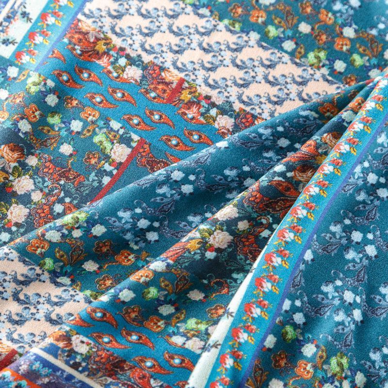 Креп 026-06199 бирюзовый принтованный в Петрозаводске