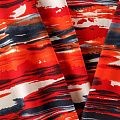 Плательный креп с абстрактным принтом. Ткань средней плотности, не толстая, пластичная, поверхность полотна матовая, с характерной мелкозернистой фактурой, прочная, практически не мнется, хорошо драпируется. Превосходно подойдет для пошива стильного костюма, юбки, платья, комбинезона, топа, брюк.