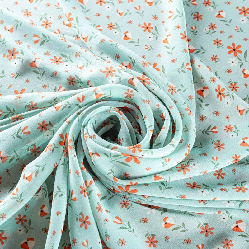Креп-шифон 027-01274 бирюзовый принтованный в Петрозаводске
