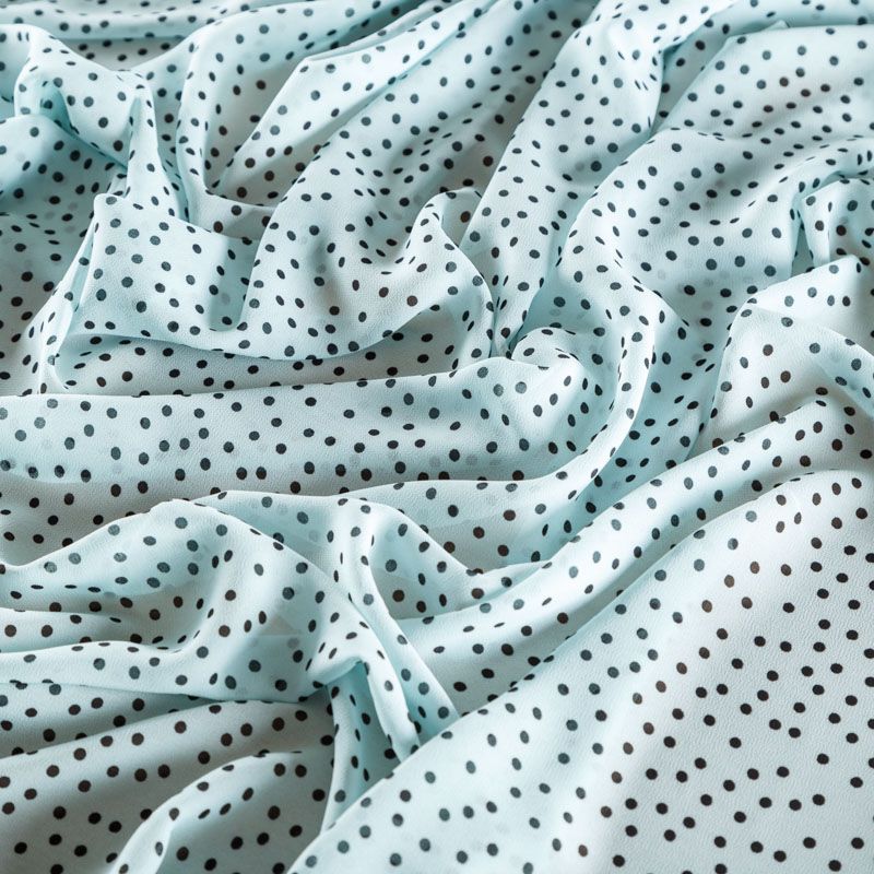 Легкий, воздушный, мягкий и нежный креп-шифон, прекрасно драпируется, приятен к телу, полупрозрачный, может потребоваться подклад. Поверхность матовая, без блеска, фактурная. Идеален для нежных платьев летящих силуэтов, топов, туник, блузок, юбок с роскошными драпировками и воланами.