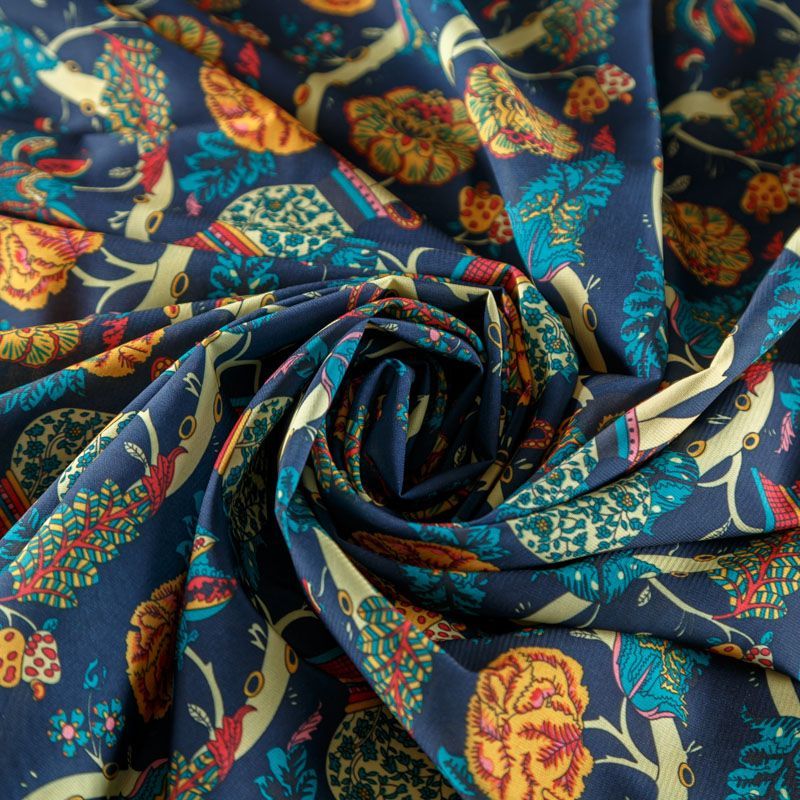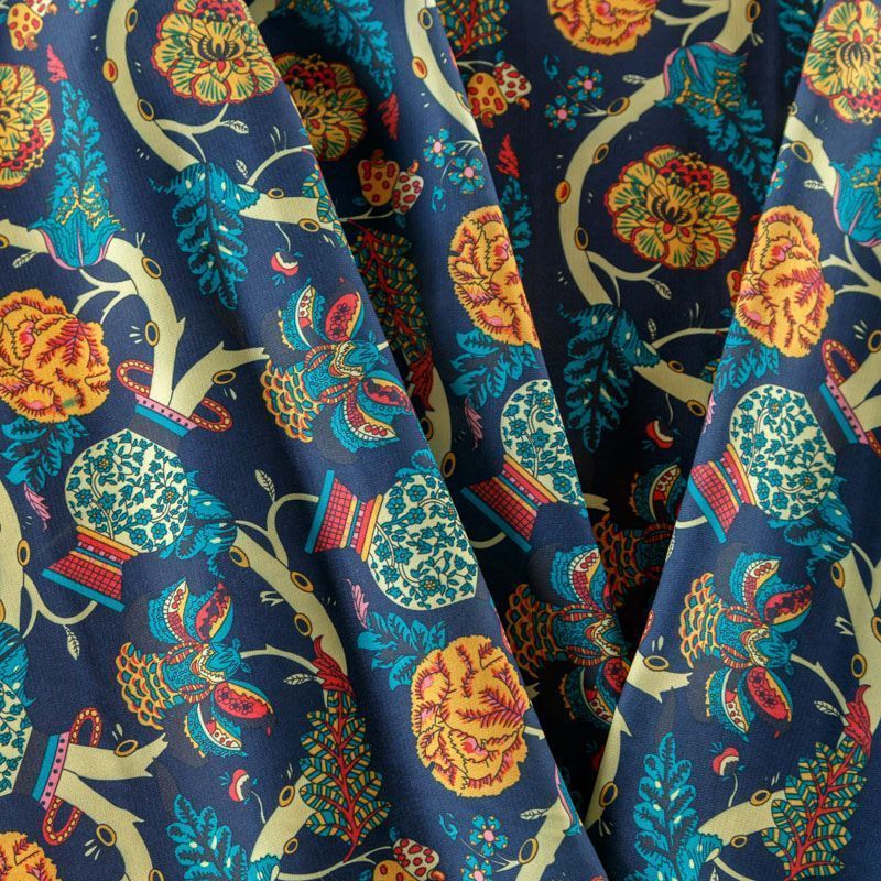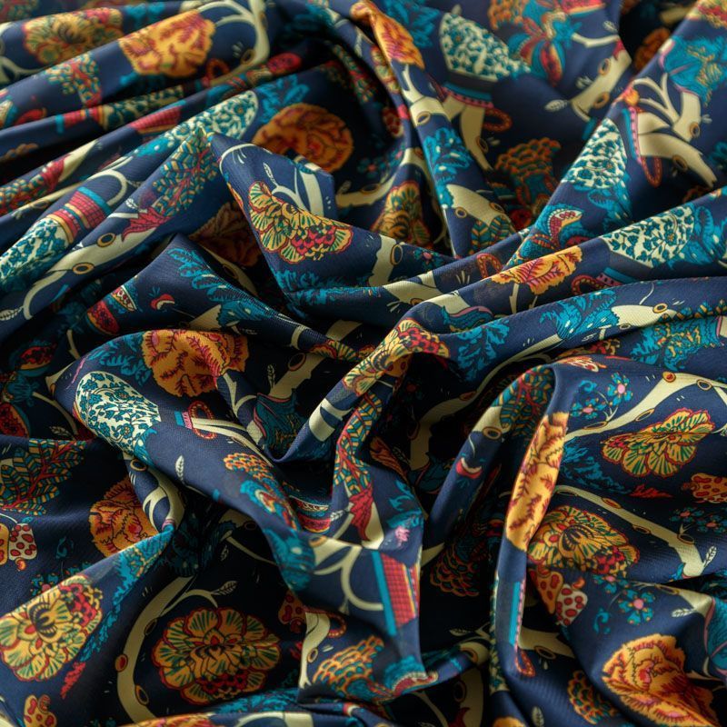 Креп-шифон 027-08366 темно-синий принтованный в Петрозаводске