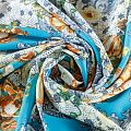 Креп-шифон К07-439 голубой принтованный