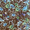 Креп-шифон натуральный К32-229 шоколадно-бирюзовый принтованный