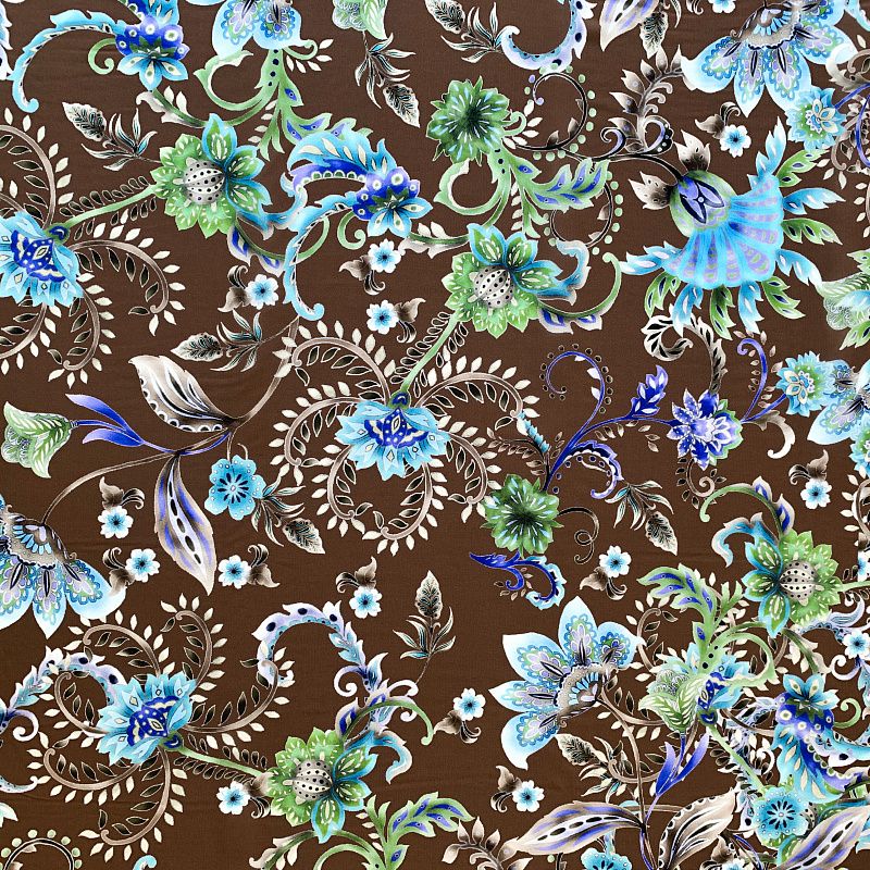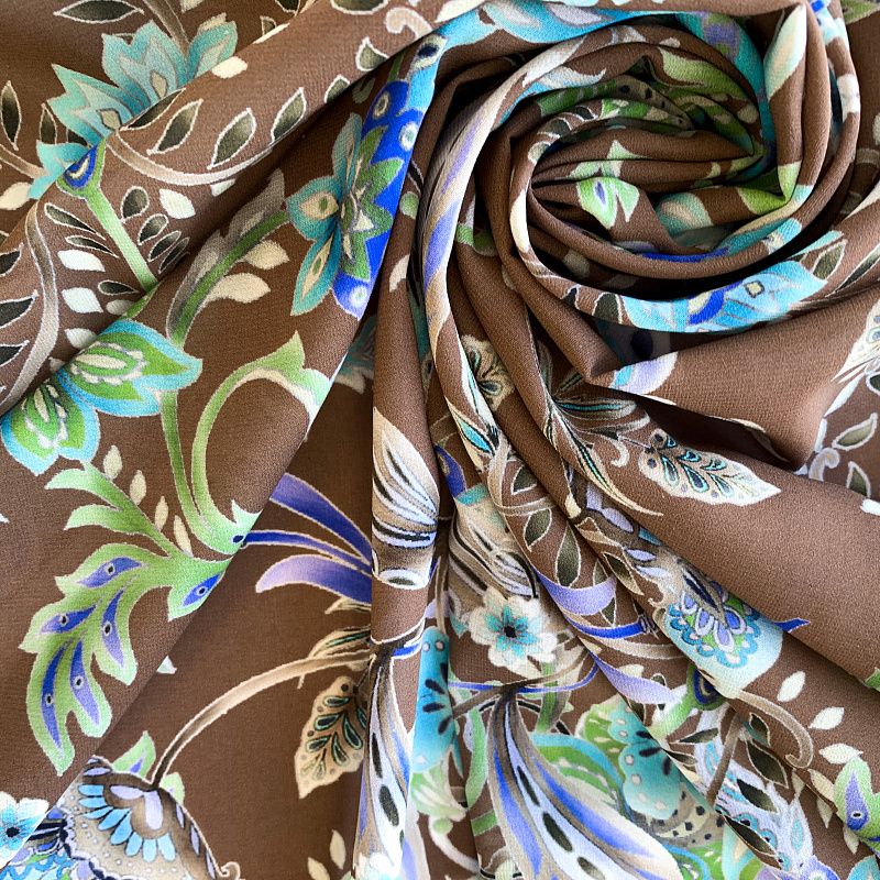 Креп-шифон натуральный К32-229 шоколадно-бирюзовый принтованный в Петрозаводске
