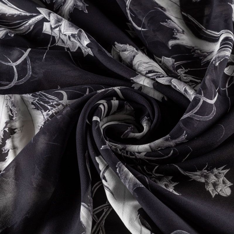 Креп-шифон натуральный К36-066 черный принтованный в Петрозаводске