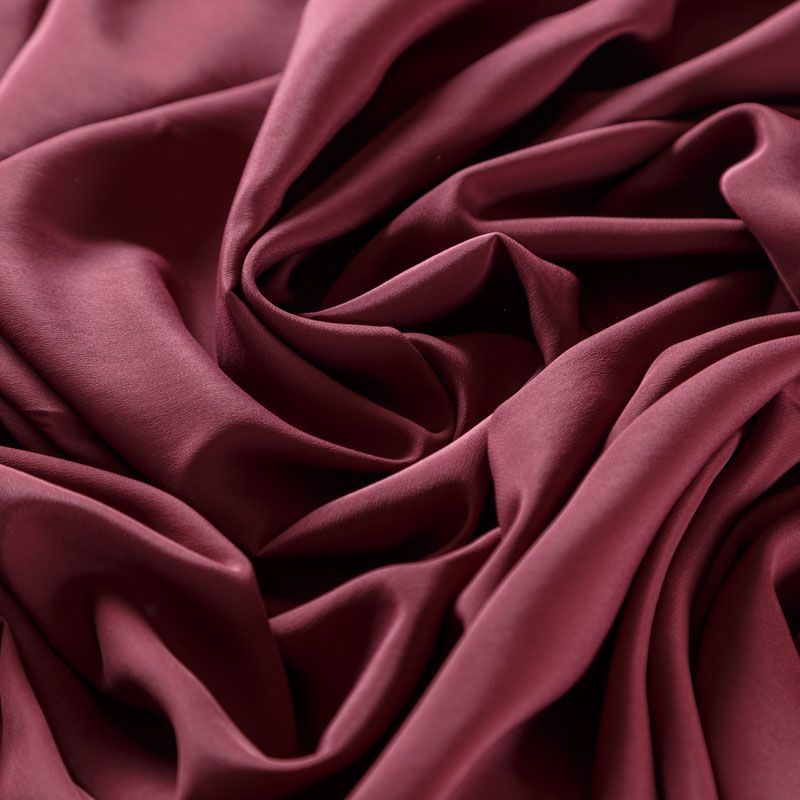 Шелковый крепдешин в бордовом оттенке, тонкий, легкий, фактурный, приятный на ощупь, тянется за счет эластана в составе. Ткань слегка просвечивает, можно использовать подклад. Прекрасно будет смотреться в платье, юбке, тунике, рубашке или блузке.