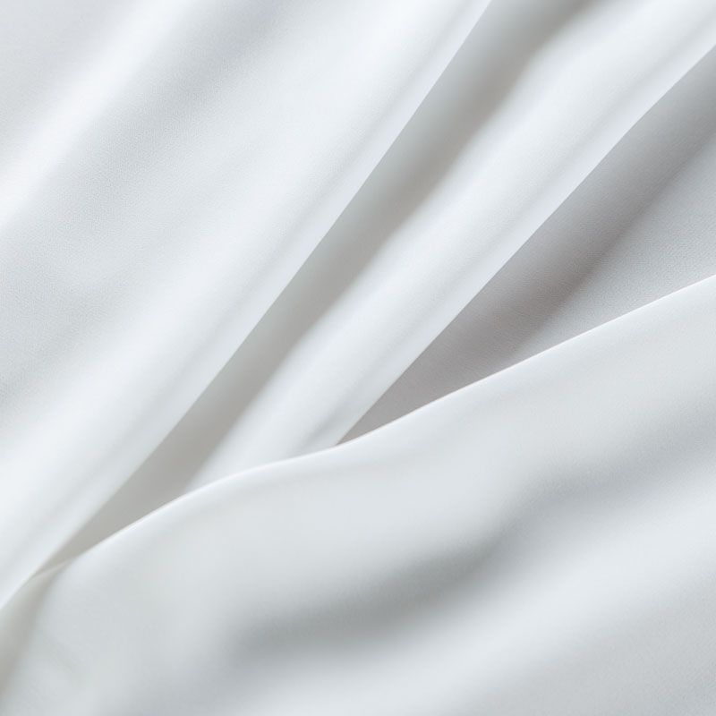 Шелковый крепдешин в белом оттенке, тонкий, легкий, фактурный, приятный на ощупь, тянется за счет эластана в составе. Ткань слегка просвечивает, можно использовать подклад. Прекрасно будет смотреться в платье, юбке, тунике, рубашке или блузке.