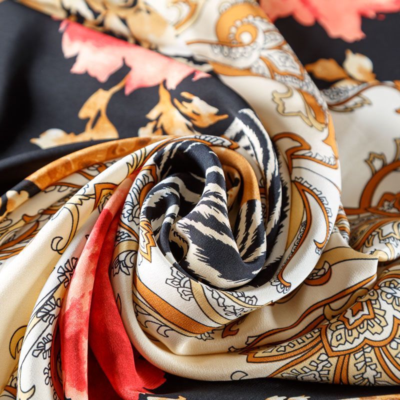 Натуральный шелковый крепдешин с матовой поверхностью, легкий, струящийся, хорошо драпируется. Оригинальный насыщенный принт выполнен в монохромной гамме в добавлением ярких цветовых акцентов. Крепдешин прекрасно подойдет для пошива летнего сарафана, платья, топа, блузки, костюма в пижамном стиле, широких брюк или юбки.