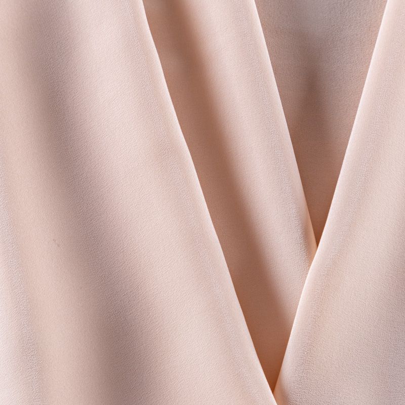 Итальянский натуральный шелковый крепдешин в молочном оттенке, фактурный, легкий и струящийся, слегка просвечивает, отлично драпируется, тянется за счет эластана в составе. Идеально подойдет для пошива платьев и сарафанов расклешенных моделей, с воланами, летящих юбок, топов, блузки, юбки, широких брюк, костюма в пижамном стиле.