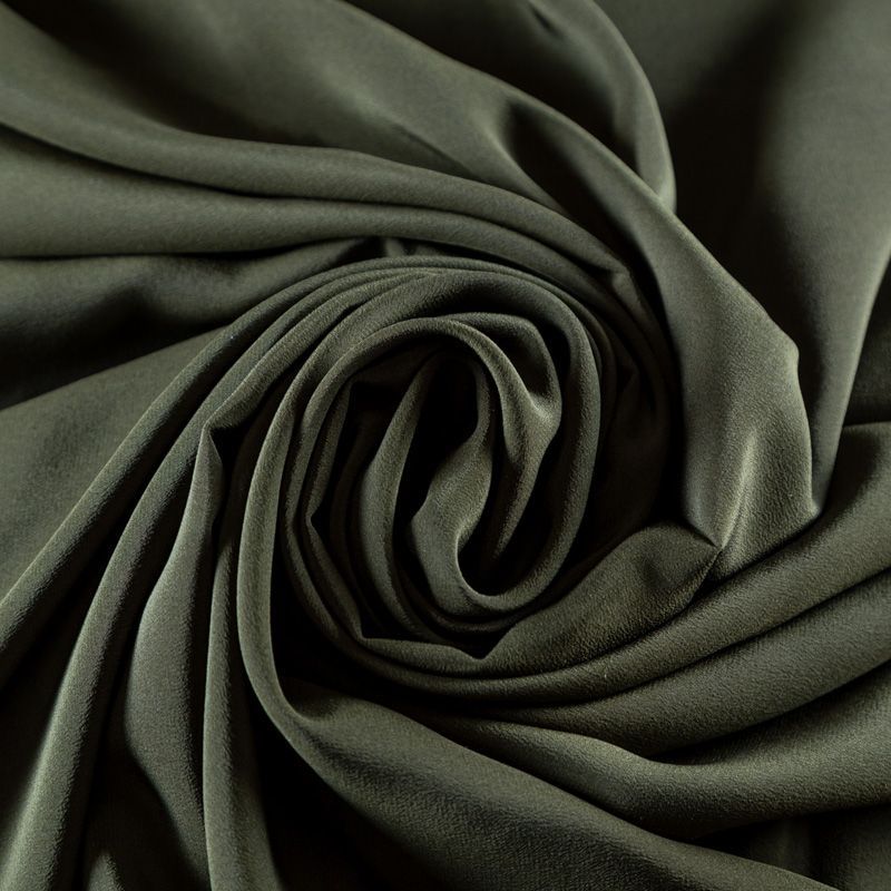Итальянский натуральный шелковый крепдешин в зеленом оттенке, слегка просвечивает, легкий и струящийся, отлично драпируется. Идеально подойдет для пошива платьев и сарафанов расклешенных моделей, с воланами, летящих юбок, топов, блузки, юбки, широких брюк, костюма в пижамном стиле.