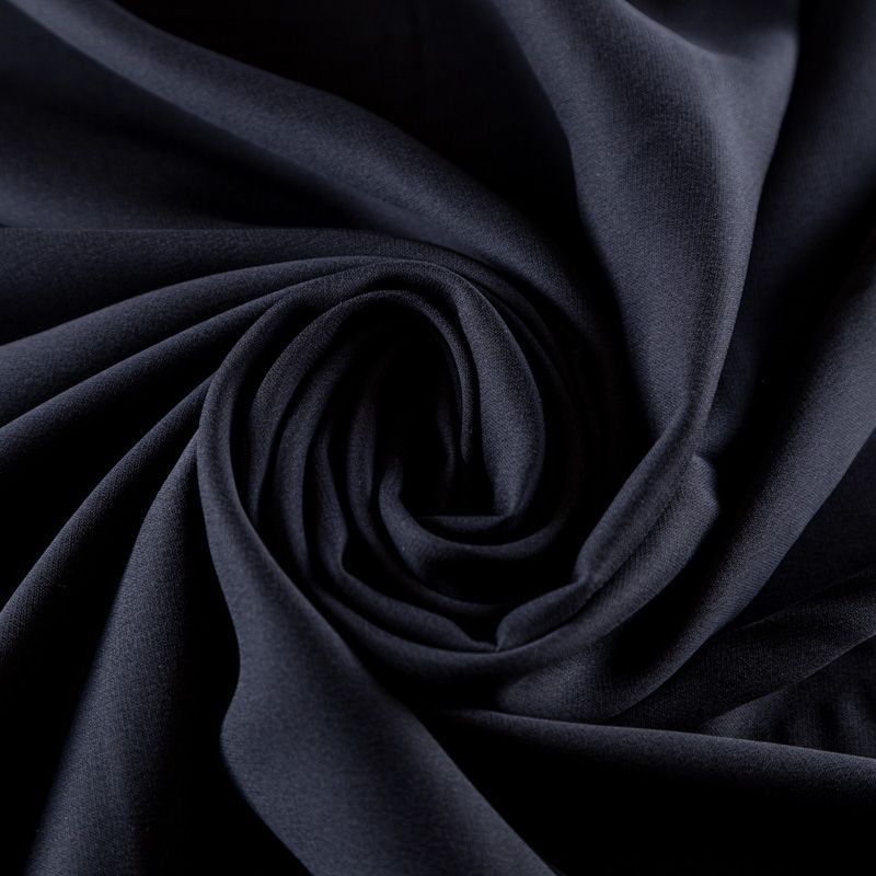 Итальянский натуральный шелковый крепдешин в черном оттенке, фактурный, легкий и струящийся, слегка просвечивает, отлично драпируется, тянется за счет эластана в составе. Идеально подойдет для пошива платьев и сарафанов расклешенных моделей, с воланами, летящих юбок, топов, блузки, юбки, широких брюк, костюма в пижамном стиле.