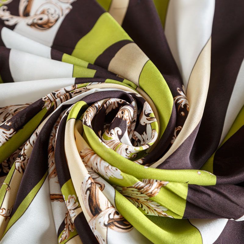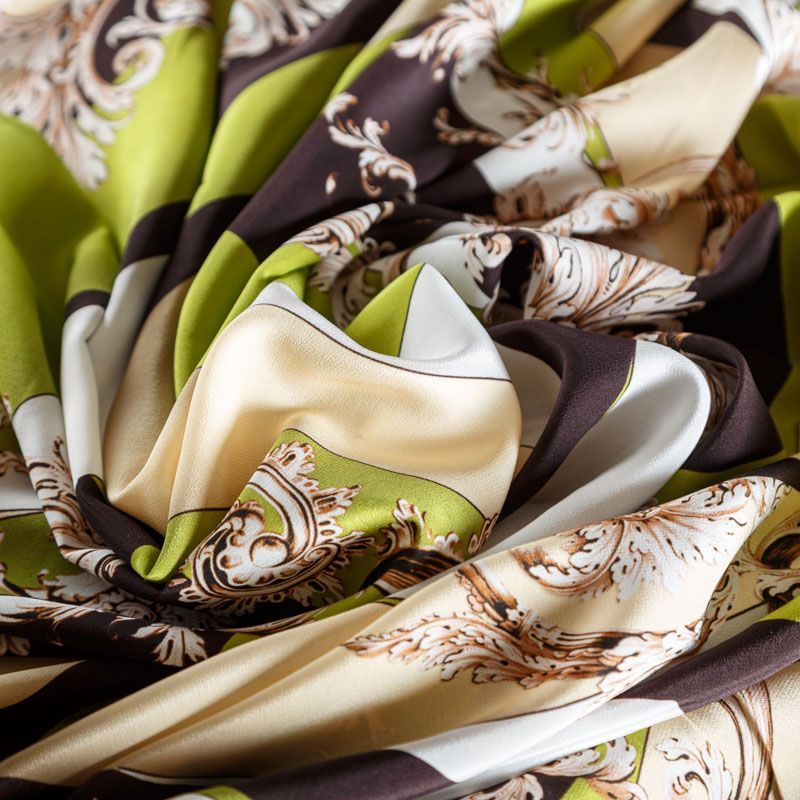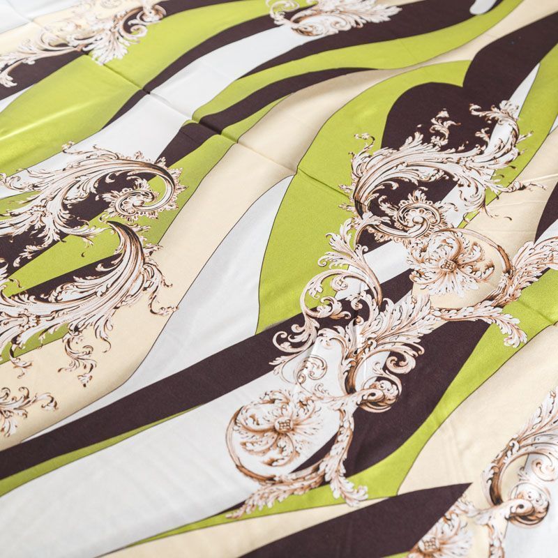 Крепдешин натуральный К01-763 молочно-лаймовый принтованный в Петрозаводске