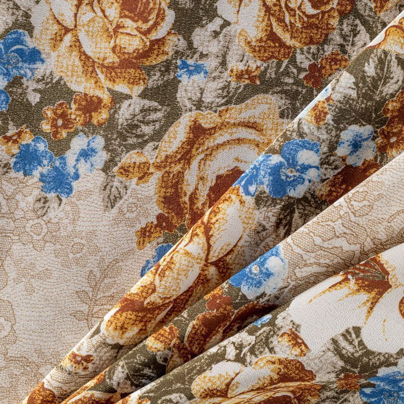 Натуральный шелковый крепдешин с матовой поверхностью, легкий, струящийся, хорошо драпируется. Изысканное сочетание цветочного принта в коричнево-синих оттенках с имитацией нежного тонкого кружева подойдет для пошива летнего сарафана, платья, блузки, костюма в пижамном стиле, широких брюк или юбки.