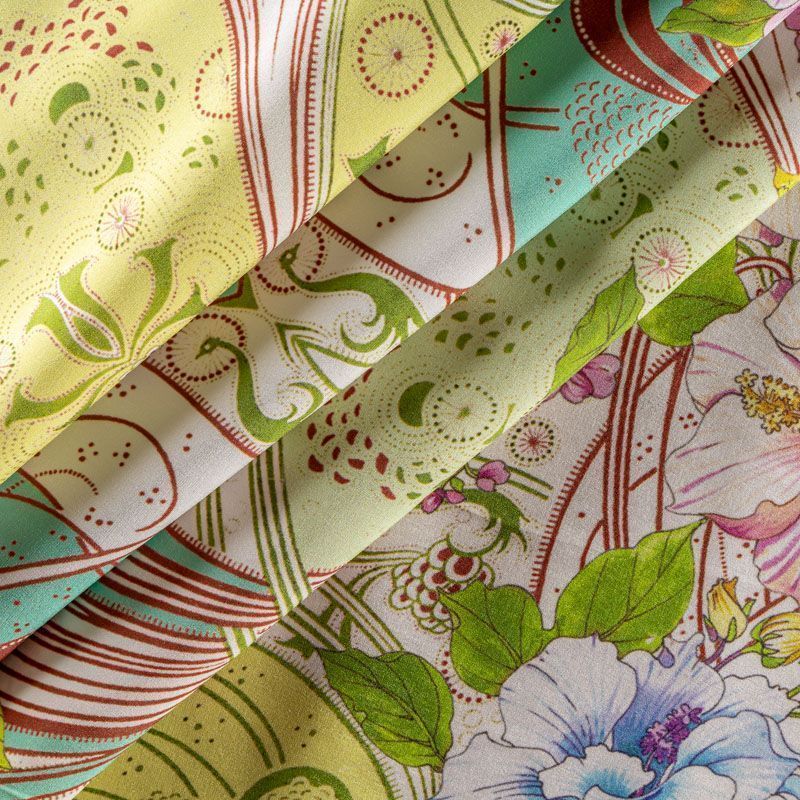 Крепдешин натуральный К06-0095 салатовый принтованный в Петрозаводске