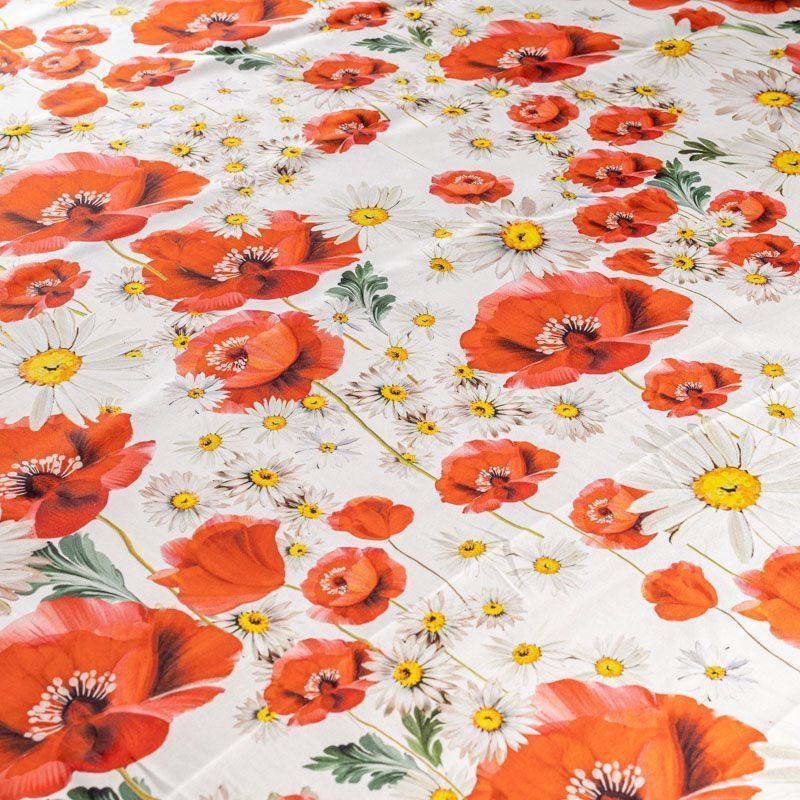 Натуральный шелковый крепдешин с матовой поверхностью, легкий, струящийся, хорошо драпируется, тянется за счет эластана в составе. Яркий летний цветочный принт, актуальный в этом сезоне, будет уместен для пошива летнего сарафана, платья, блузки, костюма в пижамном стиле, широких брюк или юбки.