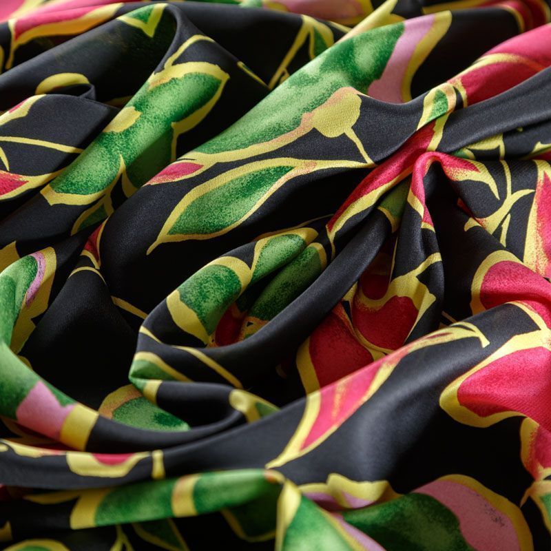 Крепдешин натуральный К18-187 черный принтованный в Петрозаводске