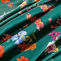 Итальянский крепдешин с матовой лицевой поверхностью с цветочным принтом на зеленом фоне, тонкий, слегка прозрачный, отлично драпируется, легкий и струящийся. Идеально подойдет для пошива платьев и сарафанов расклешенных моделей, с воланами, летящих юбок, топов, блузки, костюма в пижамном стиле.