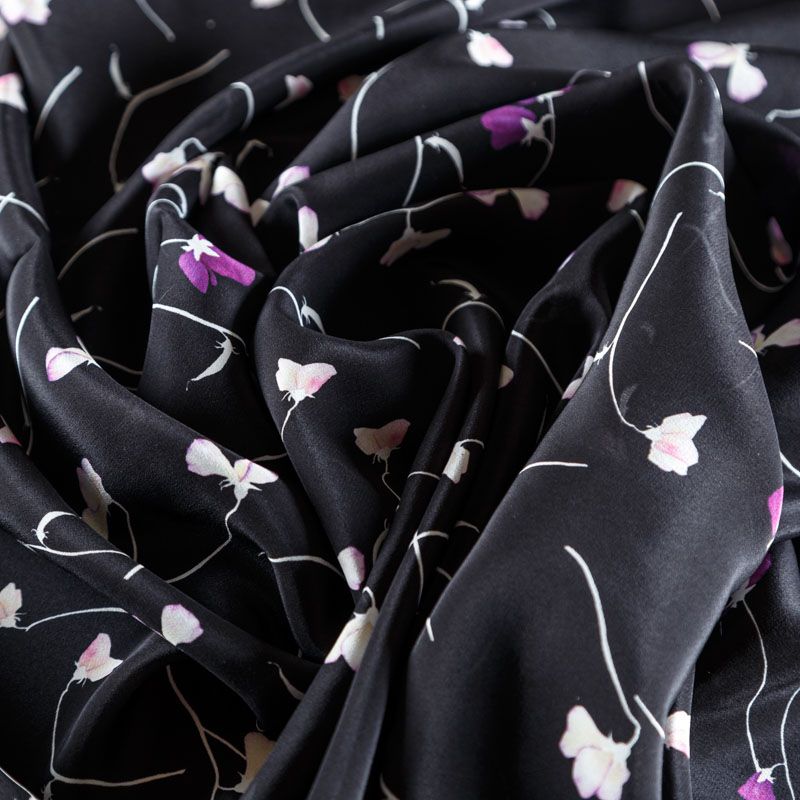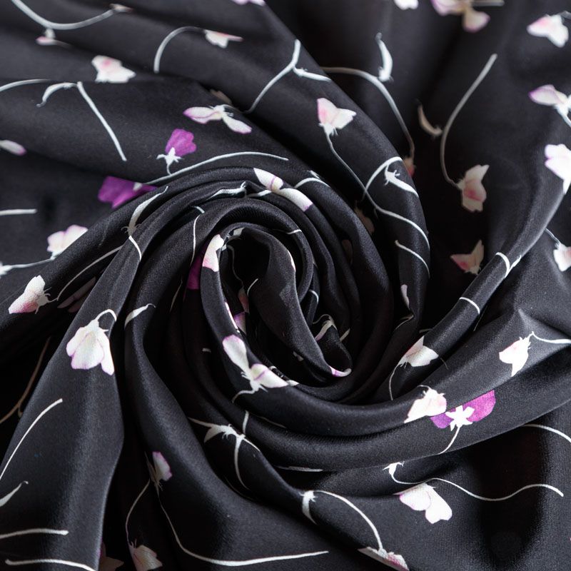 Крепдешин натуральный К24-034 черный принтованный в Петрозаводске