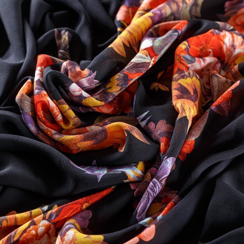 Крепдешин натуральный К29-785 черный принтованный в Петрозаводске