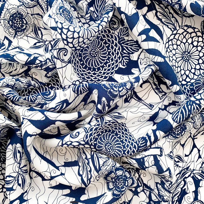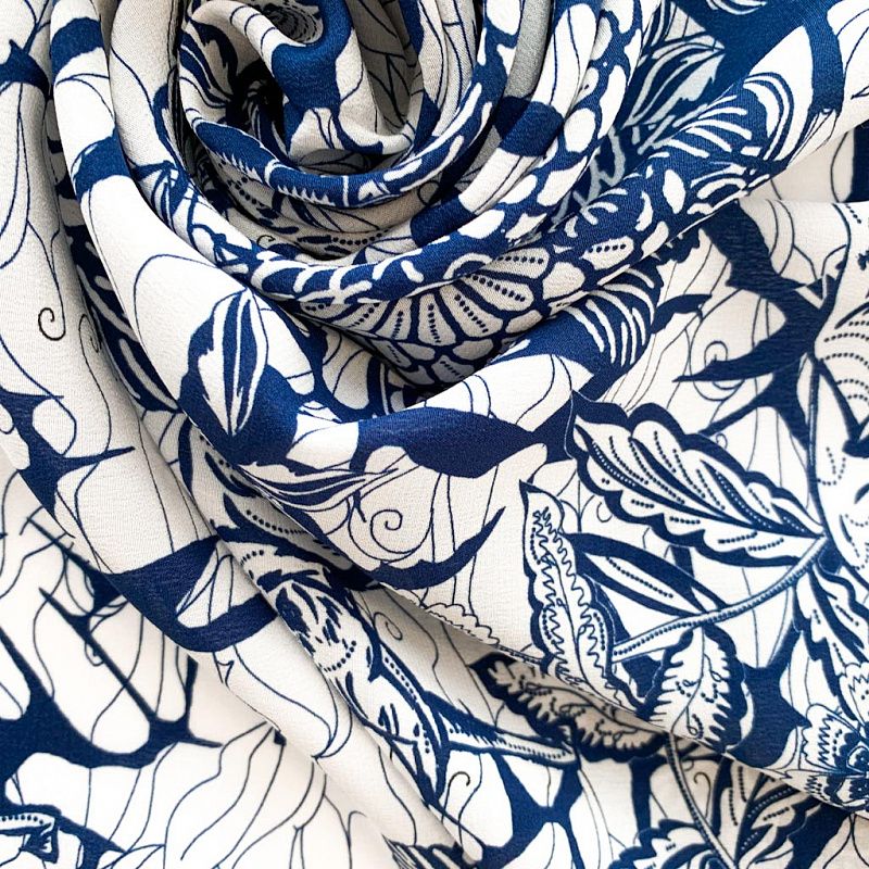 Крепдешин натуральный К32-233 молочный принтованный в Петрозаводске