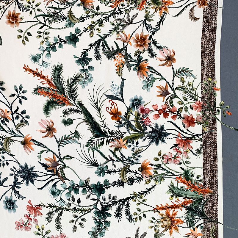 Крепдешин натуральный К32-237 бежево-серый принтованный в Петрозаводске