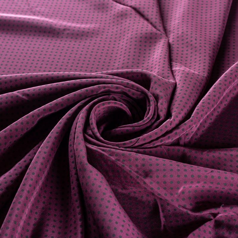 Итальянский натуральный крепдешин в сложном винном оттенке с классическим принтом "в горошек", тонкий, не прозрачный, отлично драпируется, легкий и струящийся. Идеально подойдет для пошива платьев и сарафанов расклешенных моделей, с воланами, летящих юбок, топов, блузки, юбки, широких брюк, костюма в пижамном стиле.