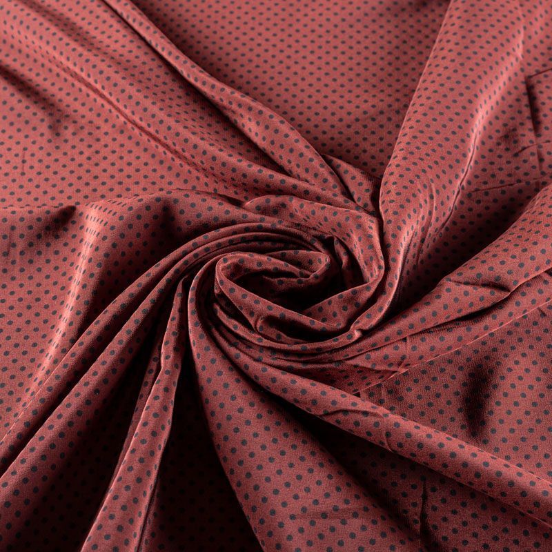 Итальянский натуральный крепдешин в сложном красивом оттенке с классическим принтом "в горошек", тонкий, не прозрачный, отлично драпируется, легкий и струящийся. Идеально подойдет для пошива платьев и сарафанов расклешенных моделей, с воланами, летящих юбок, топов, блузки, юбки, широких брюк, костюма в пижамном стиле.