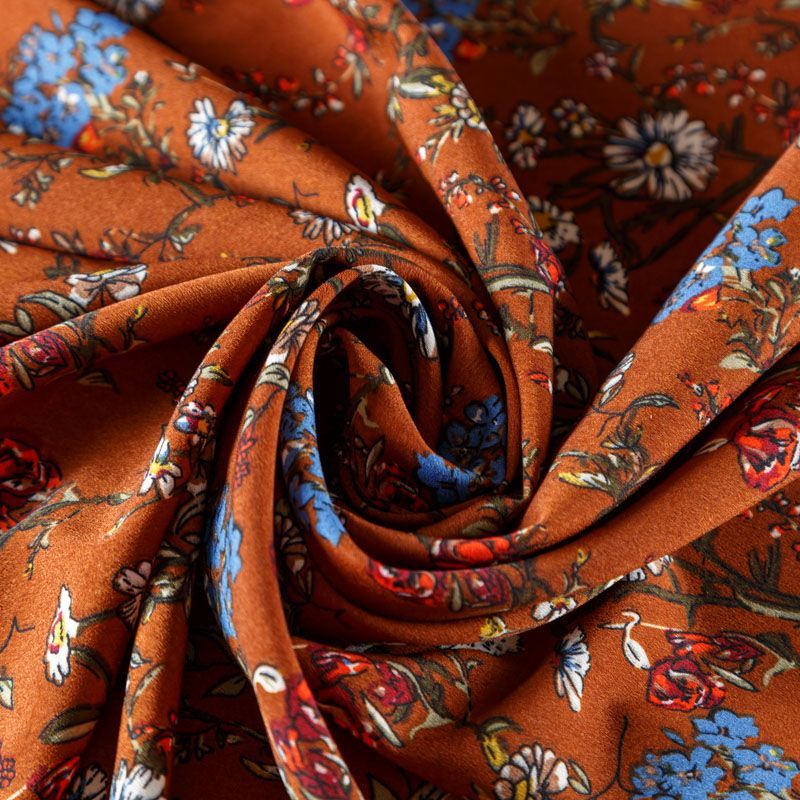 Крепдешин синтетический 029-08175 рыже-коричневый принтованный в Петрозаводске