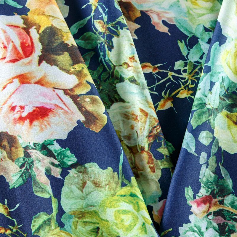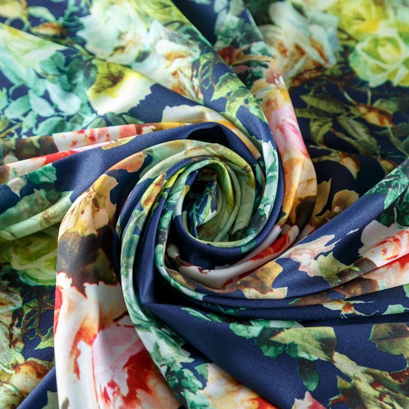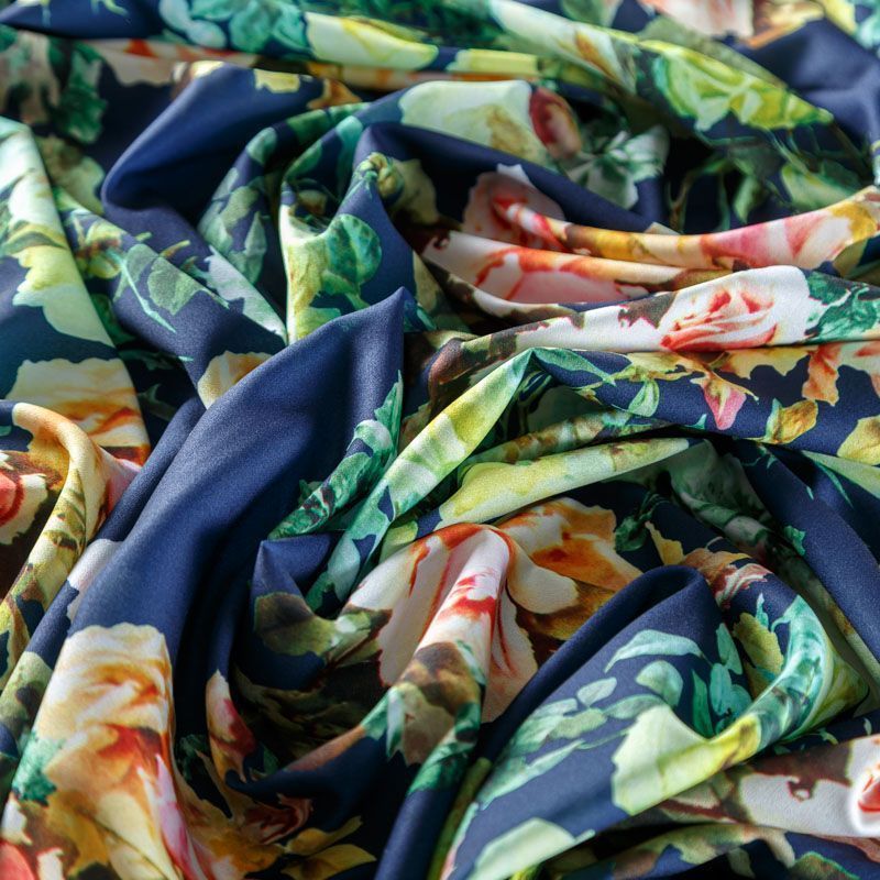 Крепдешин синтетический 029-08354 темно-синий принтованный в Петрозаводске
