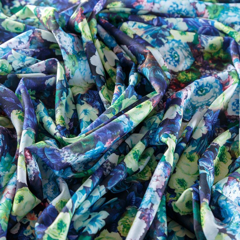 Крепдешин синтетический 029-08355 темно-синий принтованный в Петрозаводске