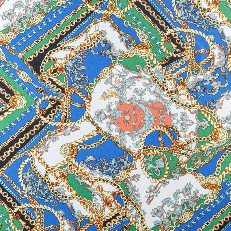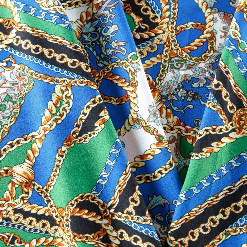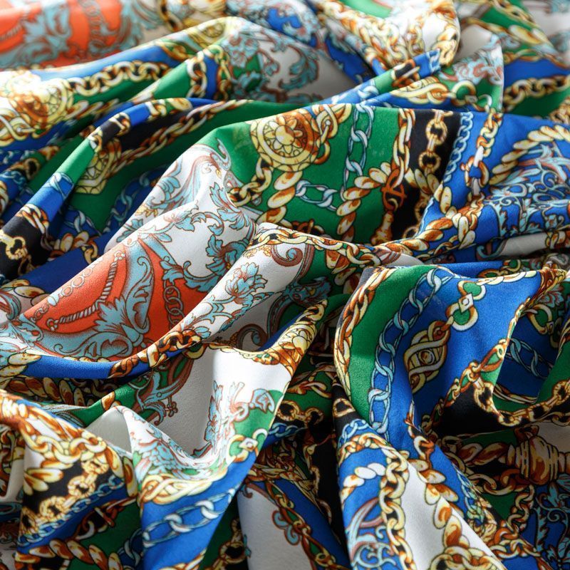 Крепдешин с абстрактным принтом, тонкий, легкий, фактурный, приятный на ощупь. Очень пластичный, тянется за счет эластана в составе, прекрасно драпируется и струится. Ткань слегка просвечивает, можно использовать подклад. Идеально будет смотреться в платье, юбке, тунике, рубашке или блузке.