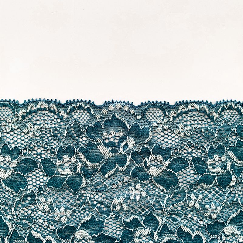 Эластичное кружево сочетает в себе мягкость, прочность и красоту, благодаря своей упругости оно долго не теряет первоначальную форму. Используется для пошива нижнего белья, а так же применяется как отделочный декор в одежде.