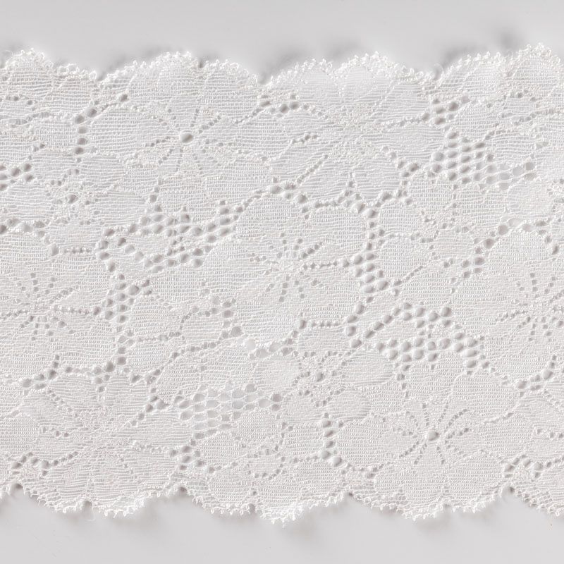 Эластичное кружево сочетает в себе мягкость, прочность и красоту, благодаря своей упругости оно долго не теряет первоначальную форму. Используется для пошива нижнего белья, а так же применяется как отделочный декор в одежде.
