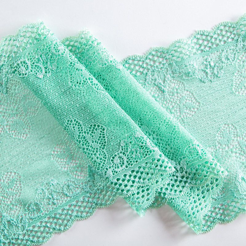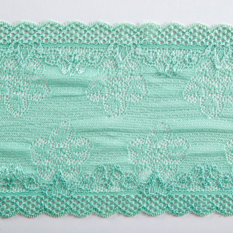 Эластичное кружево сочетает в себе мягкость, прочность и красоту, благодаря своей упругости оно долго не теряет первоначальную форму. Используется для пошива нижнего белья, а так же применяется как отделочный декор в одежде.