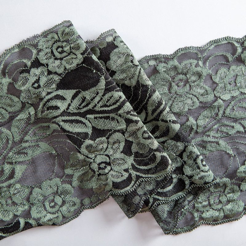 Эластичное кружево сочетает в себе мягкость, прочность и красоту, благодаря своей упругости оно долго не теряет первоначальную форму. Используется для пошива нижнего белья, а так же применяется как отделочный декор в одежде.