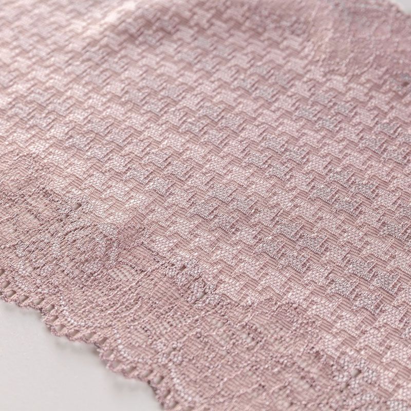 Эластичное кружево сочетает в себе мягкость, прочность и красоту, благодаря своей упругости оно долго не теряет первоначальную форму. Используется для пошива нижнего белья, а так же применяется как отделочный декор в одежде.