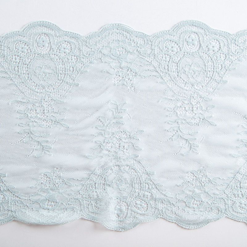 Эластичное кружево сочетает в себе мягкость, прочность и красоту, благодаря своей упругости оно долго не теряет первоначальную форму. Используется для пошива нижнего белья, а так же применяется как отделочный декор в одежде.