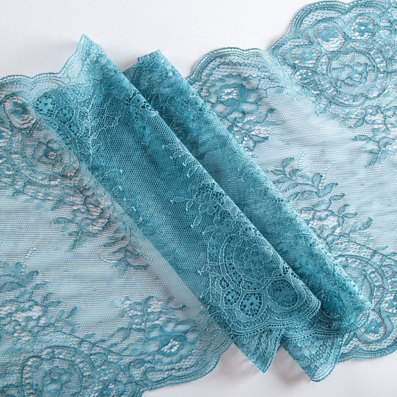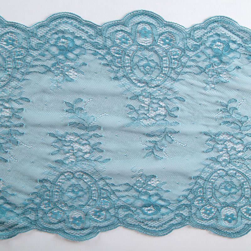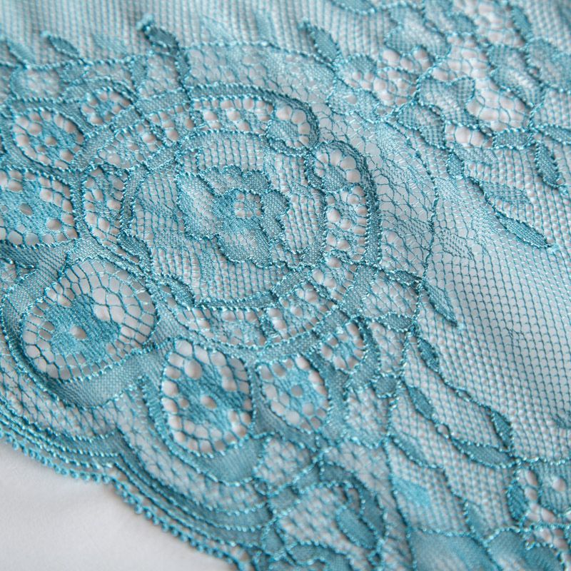 Эластичное кружево сочетает в себе мягкость, прочность и красоту, благодаря своей упругости оно долго не теряет первоначальную форму. Используется для пошива нижнего белья, а так же применяется как отделочный декор в одежде.