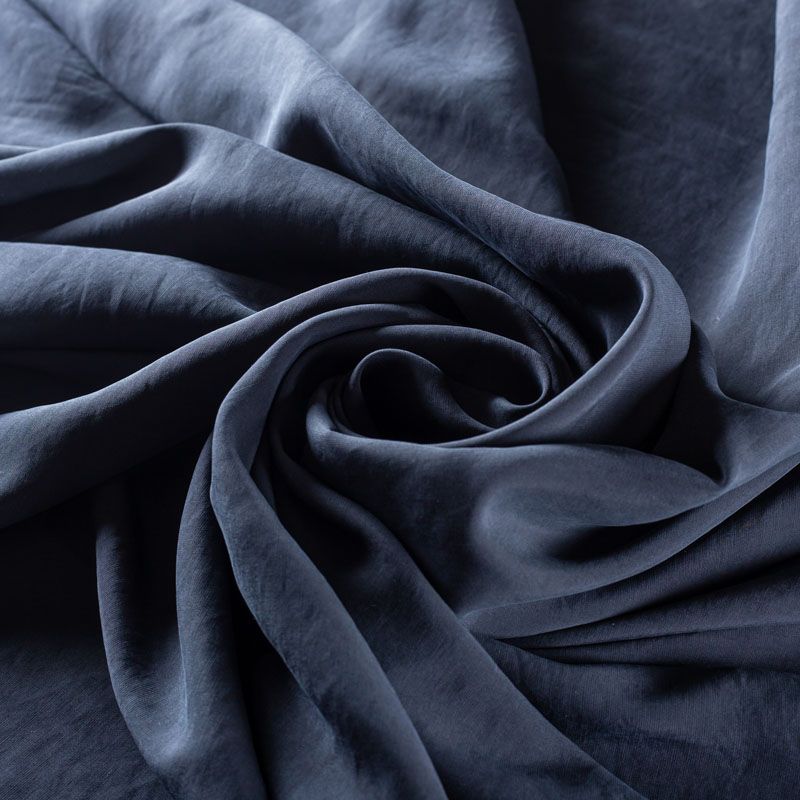Купро плательно-костюмной плотности черного цвета. Ткань мягкая, пластичная, струящаяся, отлично драпируется, не просвечивает. Поверхность ткани бархатистая, похожа на мокрый шелк. Идеально подойдет для платьев свободного силуэта, брюк-палацио, юбок, шорт, туник, платья-рубашки, блузы.