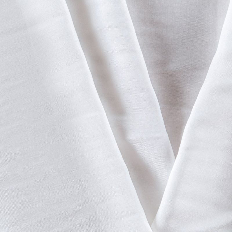 Купро плательно-костюмной плотности белого оттенка. Ткань мягкая, пластичная, струящаяся, отлично драпируется, не просвечивает. Поверхность ткани бархатистая, похожа на мокрый шелк. Идеально подойдет для платьев свободного силуэта, брюк-палацио, юбок, шорт, туник, платья-рубашки, блузы.