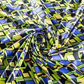 Итальянский бифлекс с разноцветным геометрическим принтом. Поверхность ткани матовая и гладкая. Отлично тянется, одежда из него не сковывает движения. Хорошо впитывает влагу и быстро высыхает, не вызывет аллергии и раздражения. Используется для пошива эстрадных, спортивных костюмов, купальников, боди.