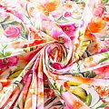 Итальянский бифлекс с ярким цветочным принтом. Поверхность ткани матовая и гладкая. Отлично тянется, одежда из него не сковывает движения. Хорошо впитывает влагу и быстро высыхает, не вызывет аллергии и раздражения. Используется для пошива эстрадных, спортивных костюмов, купальников, боди.