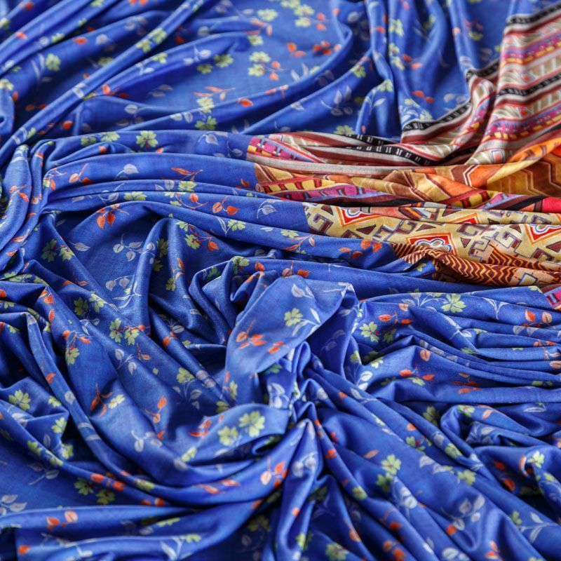 Итальяская качественная, красивая и приятная на ощупь купонная лайкра ярко-синего оттенка с цветочным принтом. Поверхность ткани матовая и гладкая. Идеально облегает фигуру, тянется по двум направлениям, хорошо драпируется, отлично держит форму, устойчива к пилингу, долговечна и гигроскопична. Используется для пошива одежды для танцев, гимнастики, фигурного катания, для велоспорта, легкой атлетики и аэробики, фитнеса и других видов спорта, для купальников, женского белья, театральных, цирковых и эстрадных костюмов.