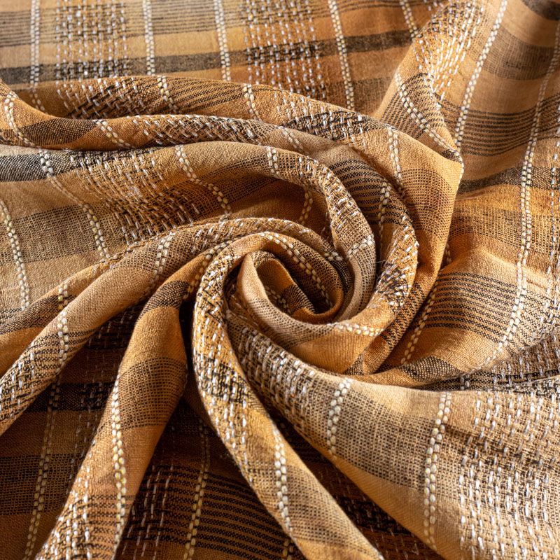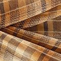 Итальянский лен с добавлением вискозы средней плотности со сложной "клетчатой" геометрией в коричневых оттенках. Различная толщина нитей создает эффектную фактуру. Ткань пластичная, гибкая за счет плетения,  матовая, мягкая, приятная на ощупь, не рыхлая, комфортная в изделии. Отлично подойдет для пошива летних костюмов, рубашек, туник, платьев, сарафанов, юбок, жакетов, брюк или шорт, легкого пальто.