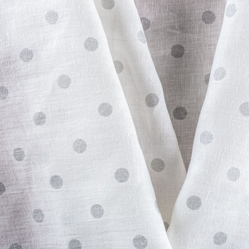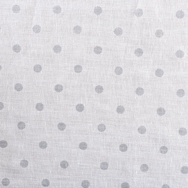 Итальянский лен плательно-рубашечный лен с классическим принтом "в горох", который декорирован серебристым напылением. Ткань прочная, имеет матовую рельефную поверхность и полотняное переплетение, отлично держит форму, не много просвечивает, пластичная, комфортная в изделии. Отлично подойдет для пошива для летних костюмов, рубашек, туник, платьев, сарафанов, юбок, жакетов, брюк или шорт.