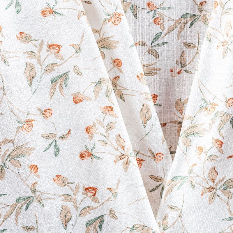 Льняная плательная ткань с добавлением вискозы белого цвета с милым цветочным принтом. Материал прочный, с выразительной матовой рельефной поверхностью, полотняным плетением, хорошо держит форму, мягкий на ощупь, пластичный, отлично драпируется. Прекрасно подойдет для пошива летних платьев, сарафанов, юбок, рубашек, брюк и шорт.