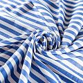 Льняная костюмно-плательная ткань в вертикальную полоску синего цвета средней ширины. Ткань прочная и плотная, с выразительной матовой рельефной поверхностью и полотняным переплетением, отлично держит форму, комфортная в изделии. Стильный вариант для летних пальто, кардиганов, платьев, сарафанов, юбок, жакетов, брюк или шорт.